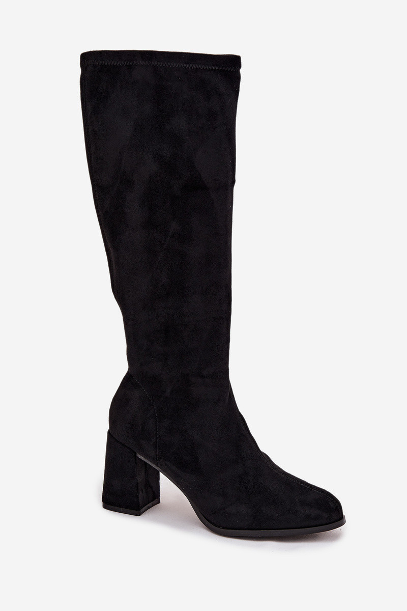 Botas de cano alto femininas com saltos em camurça sintética, na cor preta Yelisse