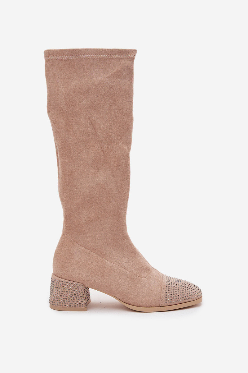 Botas de cano alto femininos com decoração Klocke de camurça sintética na cor areia Ivanna