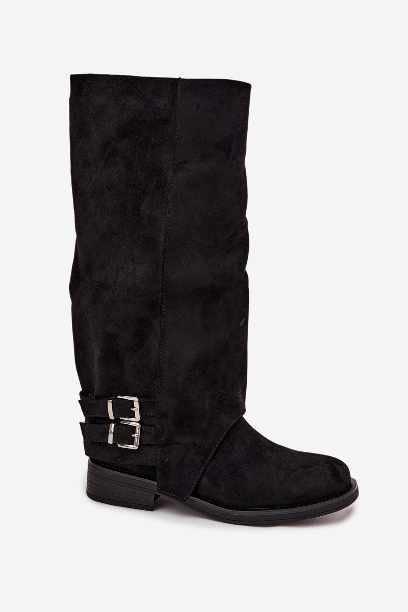 Botas de cano alto femininas acolchoadas com fivelas na cor preta Umbria