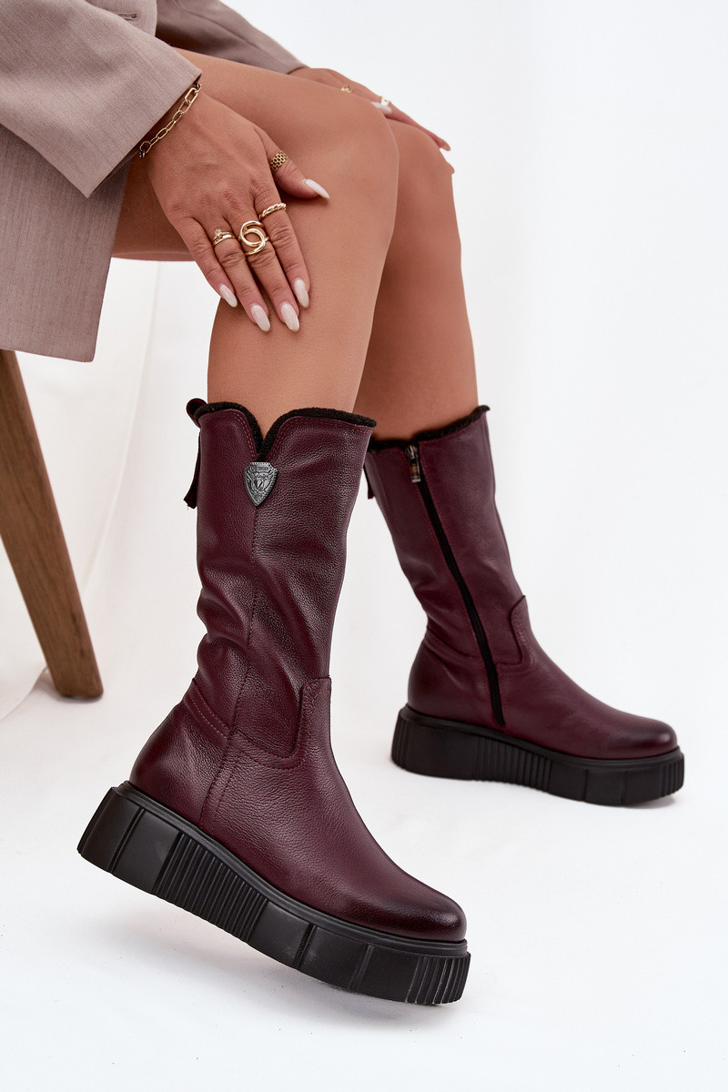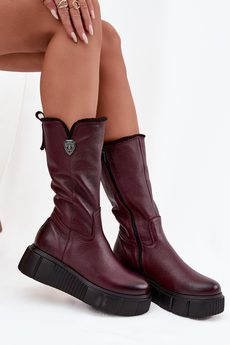 Botas femininas de cano alto de couro sintético com lã Zazoo 70121 bordeaux