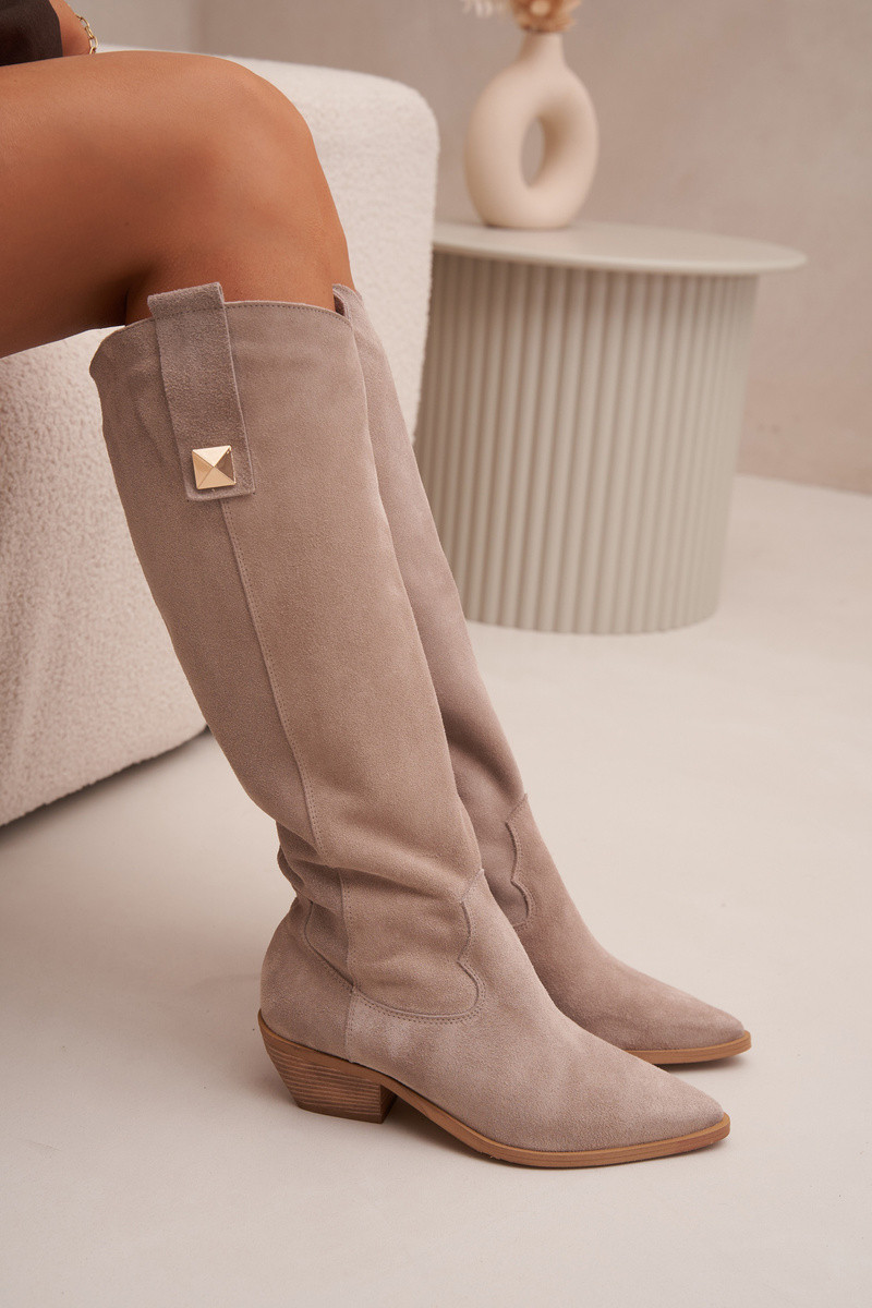 Botas de cano longo em couro sintético estilo cowboy na cor cappuccino Zazoo 4224