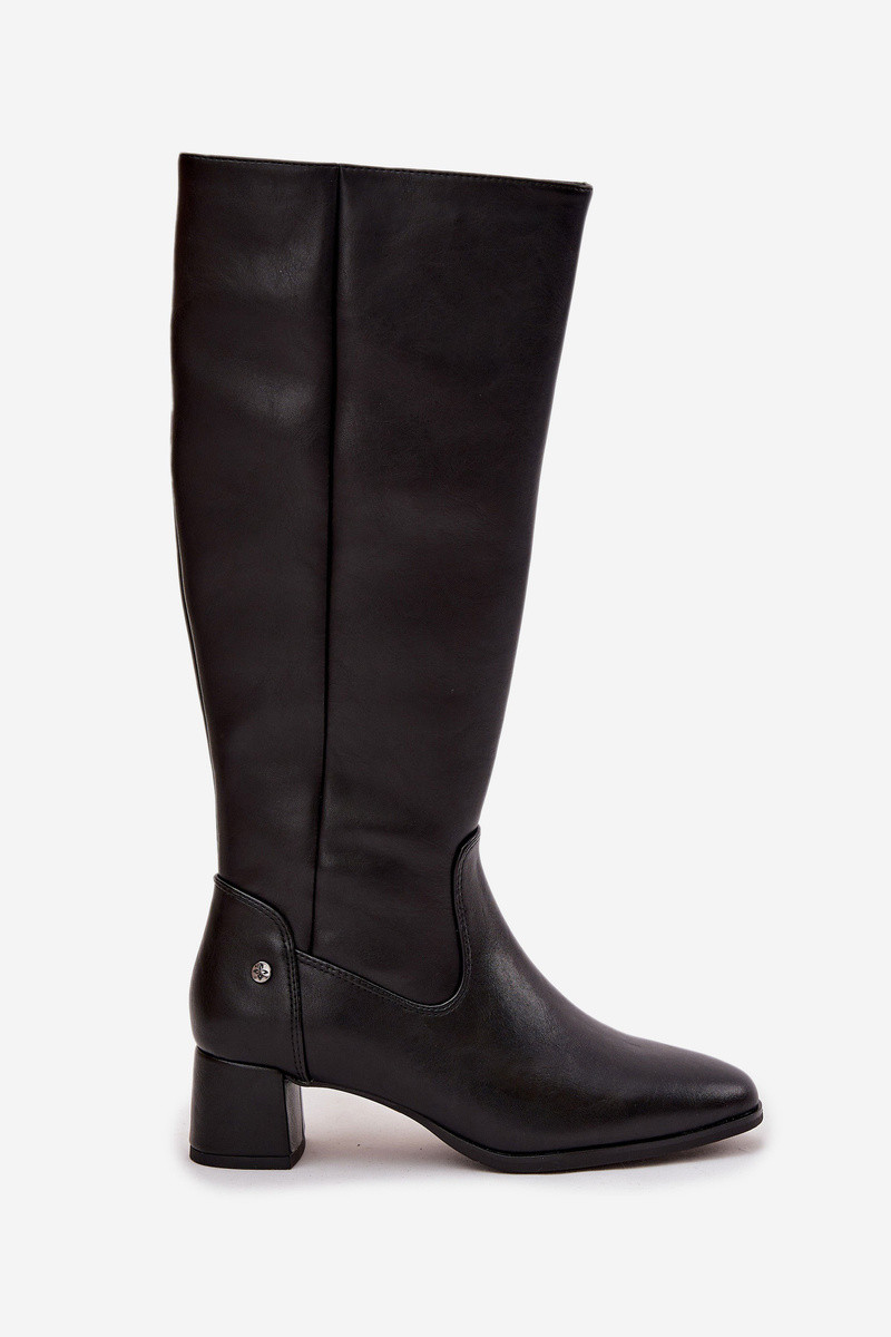Botas femininas de couro pretas, forradas, com salto Tai turiciejka A7165-01
