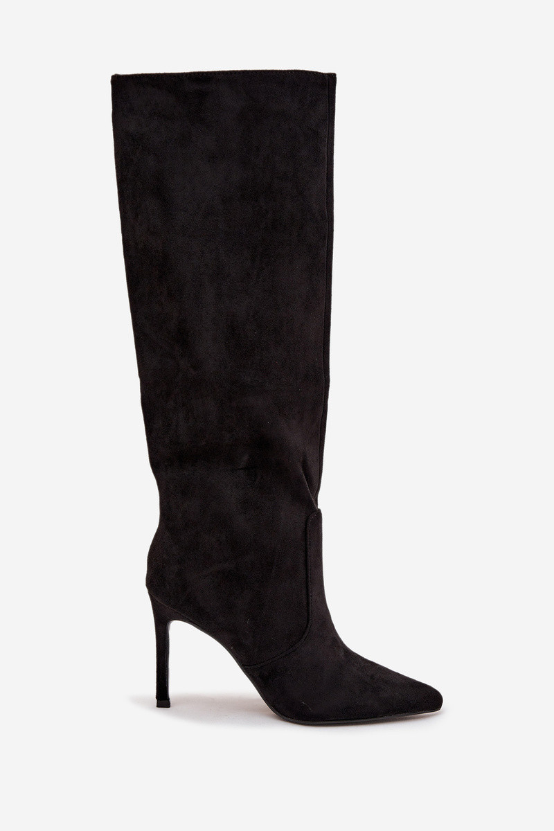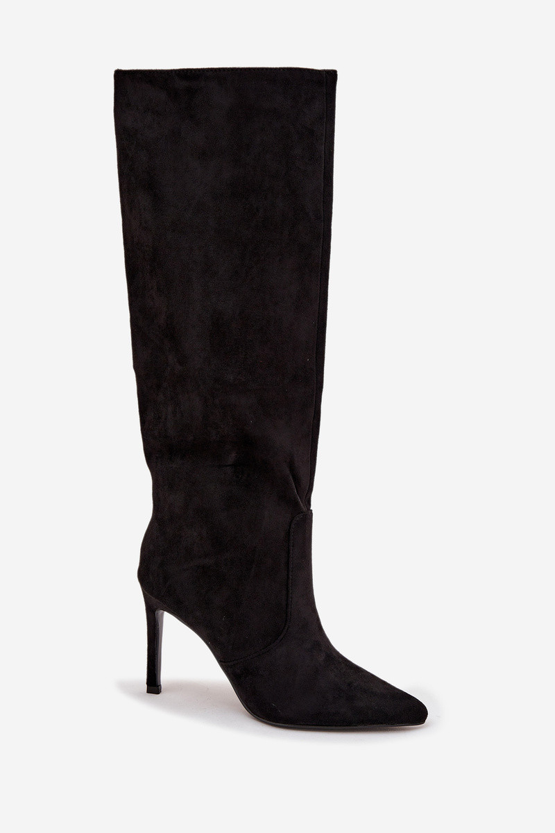 Botas femininas de camurça pretas, forradas, com saltos finos Rosavine