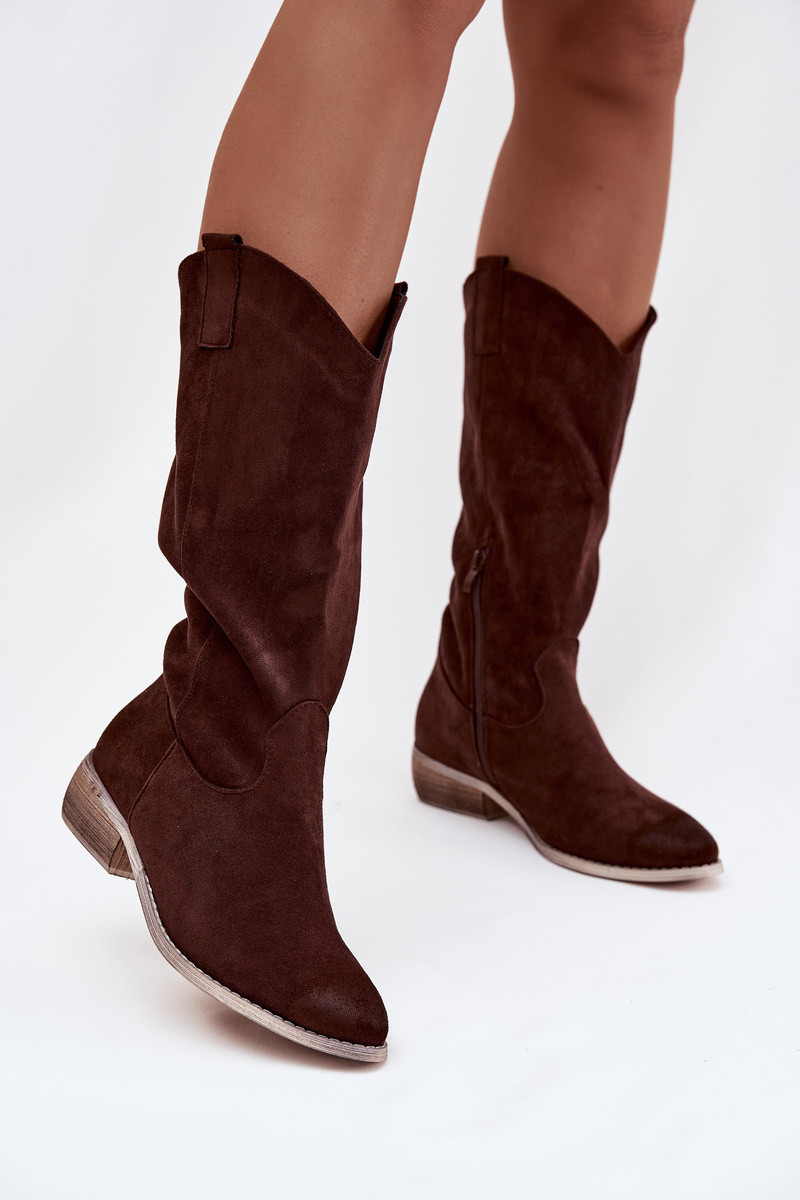 botas estilo vaqueiro De salto baixode camurça ecológicau CzekoladoParae Cherrie