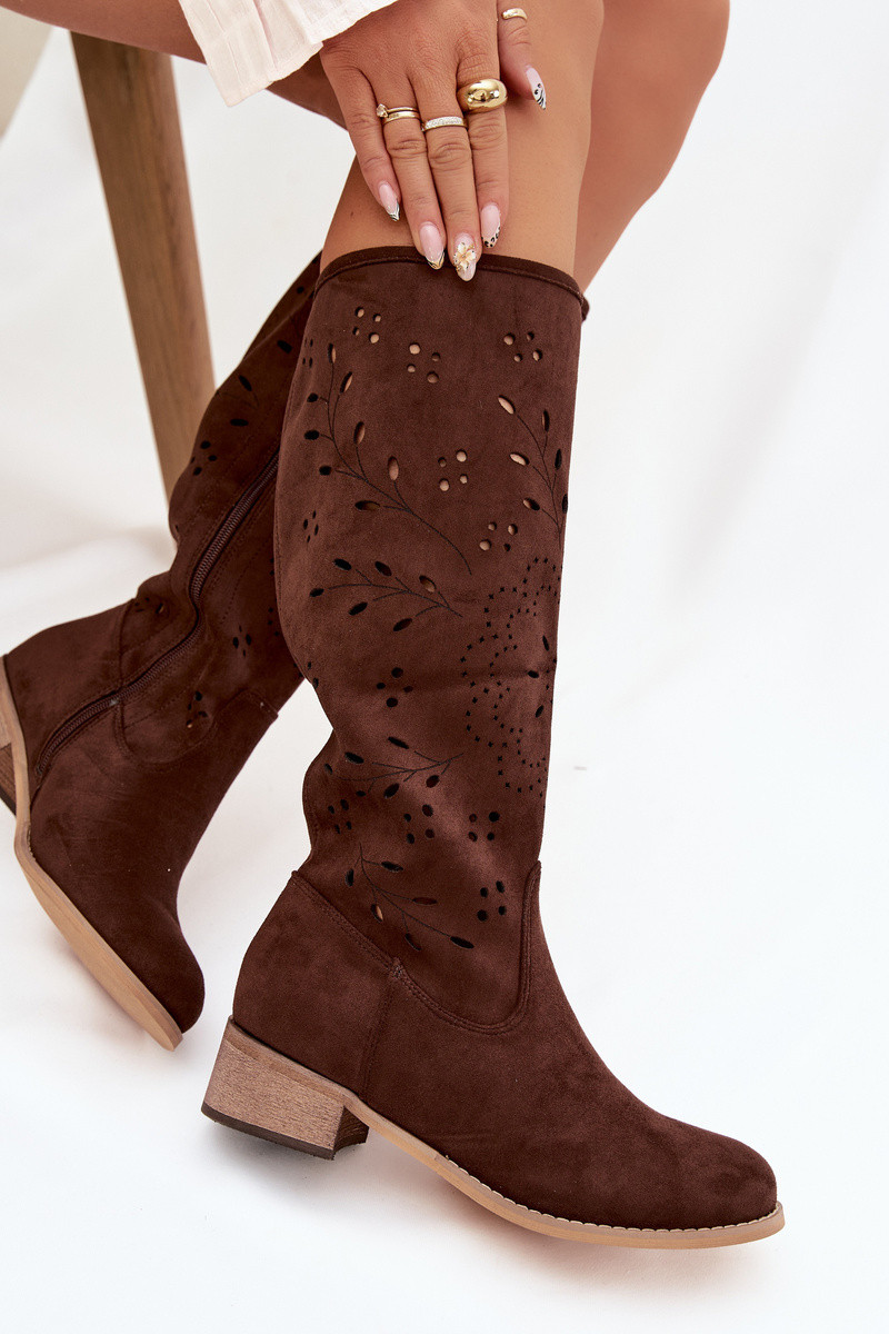 Botas femininos em tom de chocolate com elementos de renda Helinna