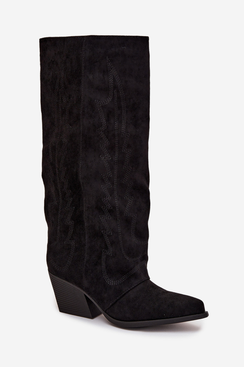 botas estilo vaqueiro Feminino Casal o castelo cor preta Isalina