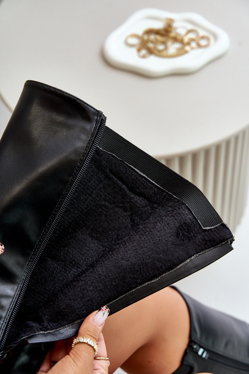 Botas longas femininas forradas com saltos largos e fivelas douradas pretas Arsisna