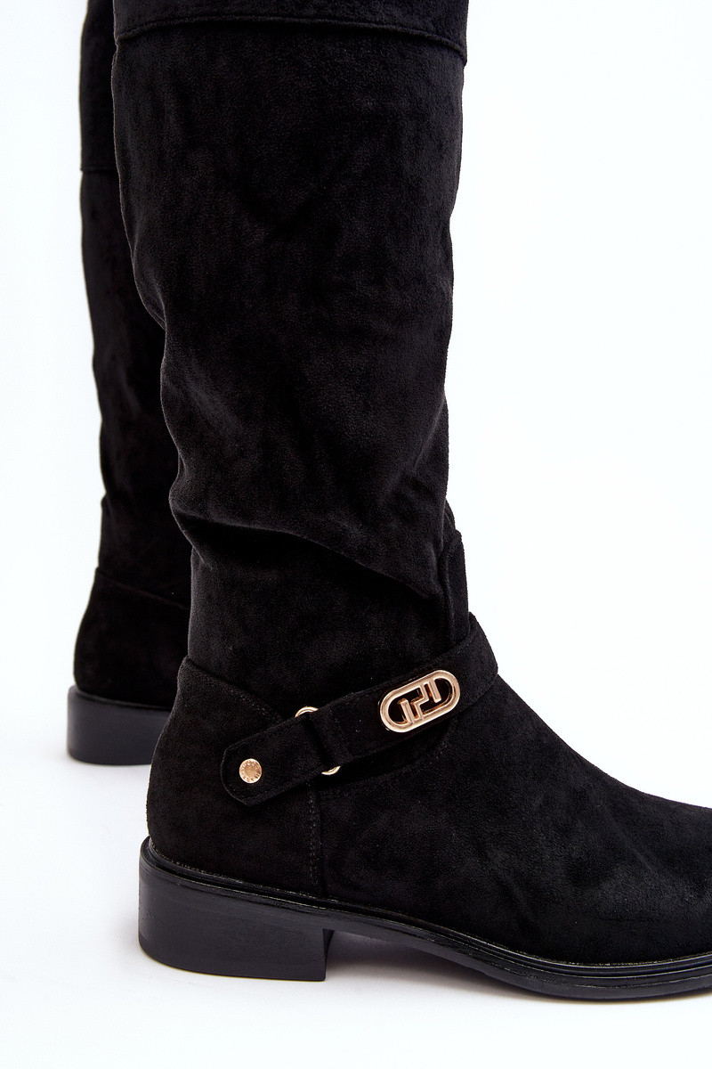 Botas de cano longo de camurça aquecidas com saltos largos S.Barski HY07-31 cor preta