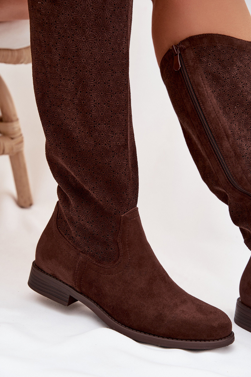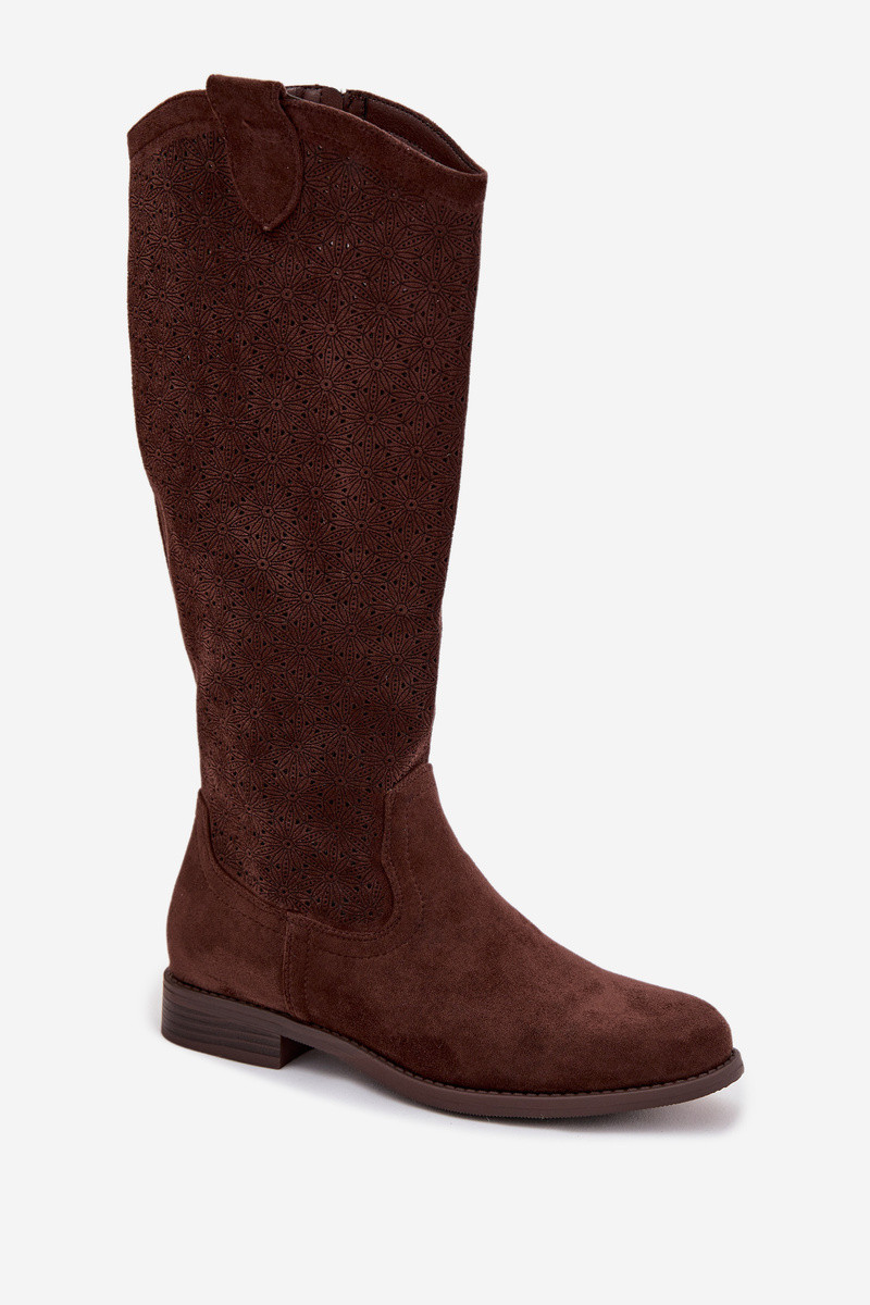 botas femininas com elementos abertos com salto largo S.Barski HY61-8022 CzekoladoParae