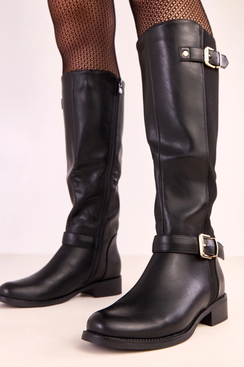 Botas de cano alto pretas com elástico Karia