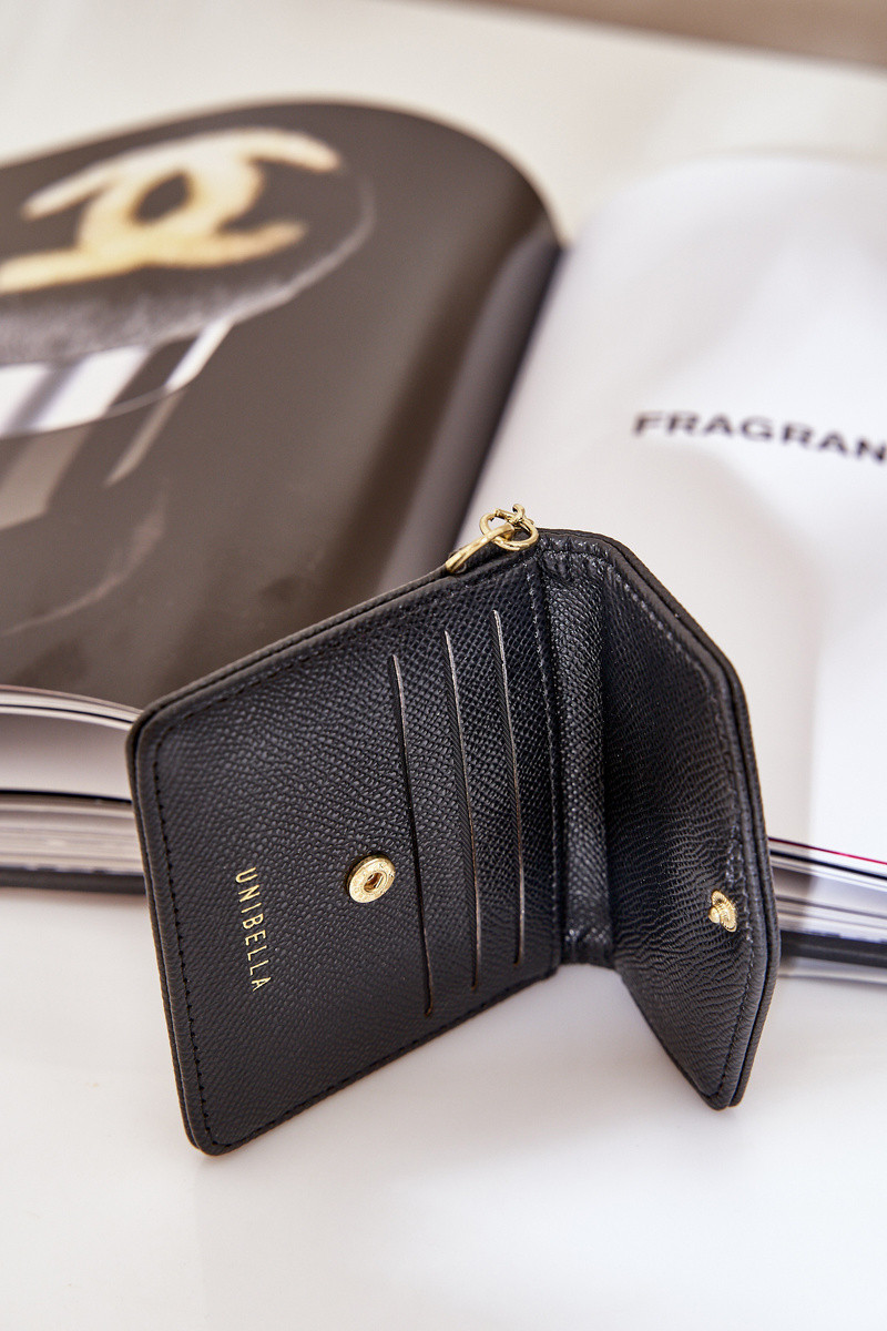 Estojo com porta-cartões na cor dourada com chaveiro de couro ecológico na cor preta Iritinme