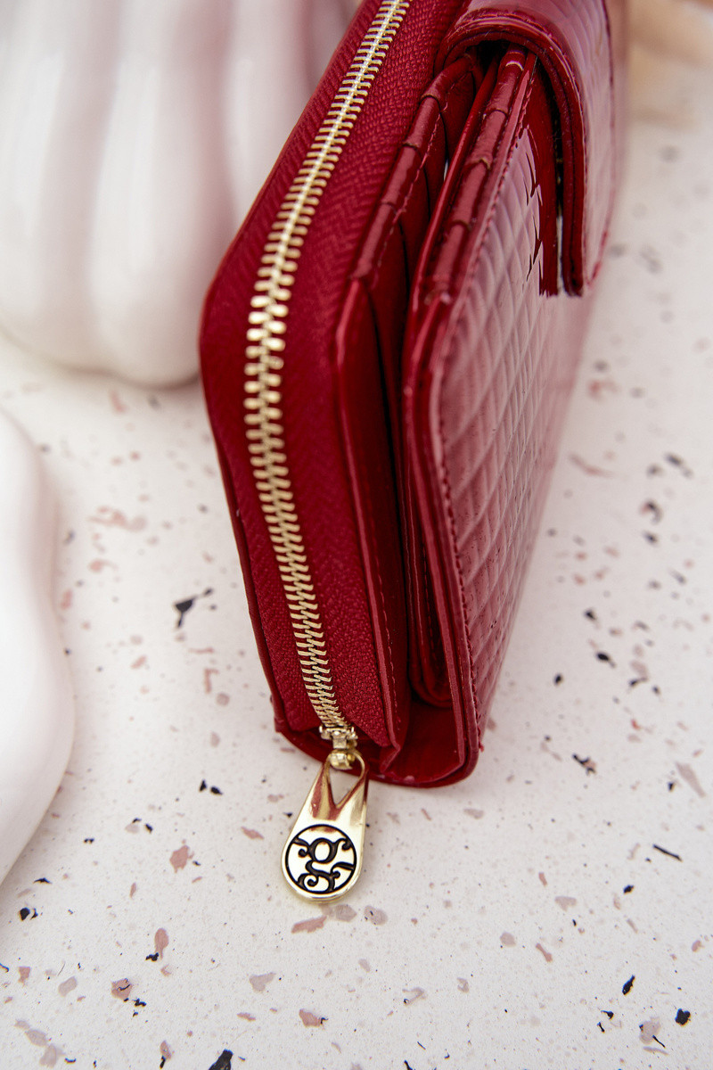 Carteira feminina laqueada com estampa e detalhes dourados vermelha Evlinne