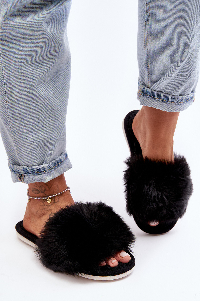 Chinelos Feminino com um casaco de pele cor preta Vienitta