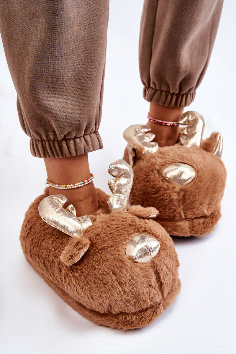 Feminino com um casaco de pele Um modelo atraente chinelos Rena cor marrom Comet