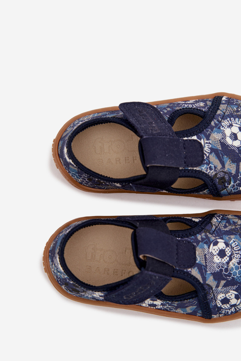 Chinelos infantis com fechos adesivos Barefoot com bolas Froddo Canvas G1700439-5 cor azul