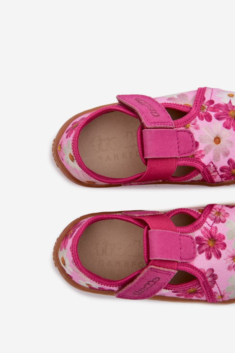 Chinelos infantis com fechos adesivos e flores Barefoot Frod