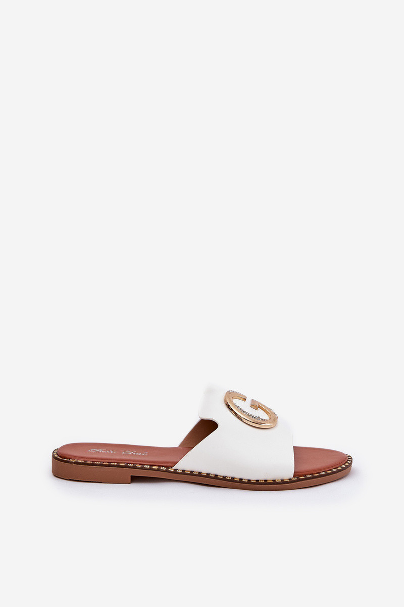 Chinelos femininos de couro sintético com detalhes decorativos na cor branca Frelie