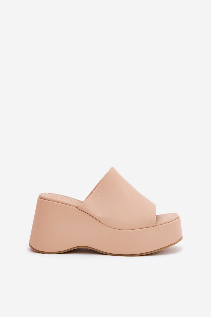 Chinelos de couro sintético femininos com plataforma na cor areia