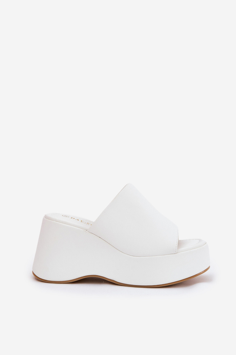 Chinelos de couro sintético femininos com plataforma na cor branca