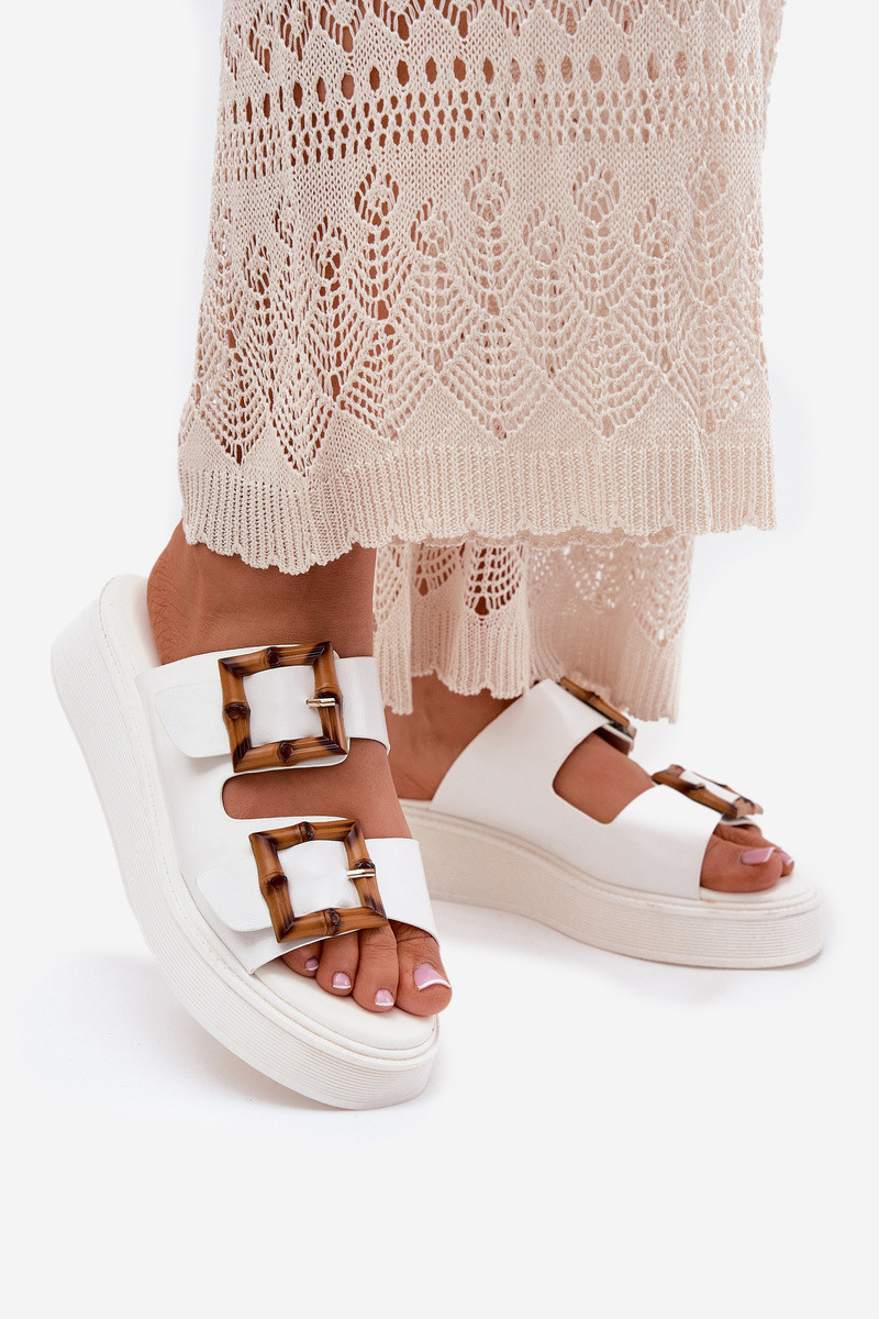 Chinelos femininos de couro sintético com plataforma e fivelas Xanivia na cor branca