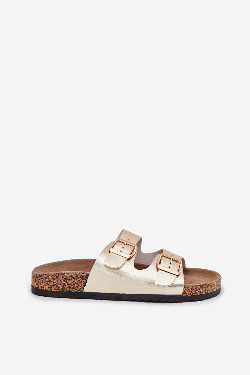 Chinelos femininos de couro sintético na cor dourada Iskira