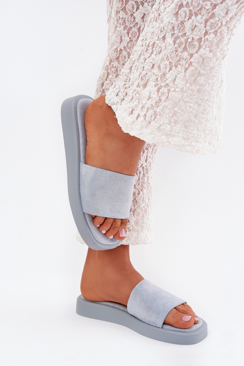 Chinelos femininos com plataforma Z em camurça sintética na cor azul clara Jorina