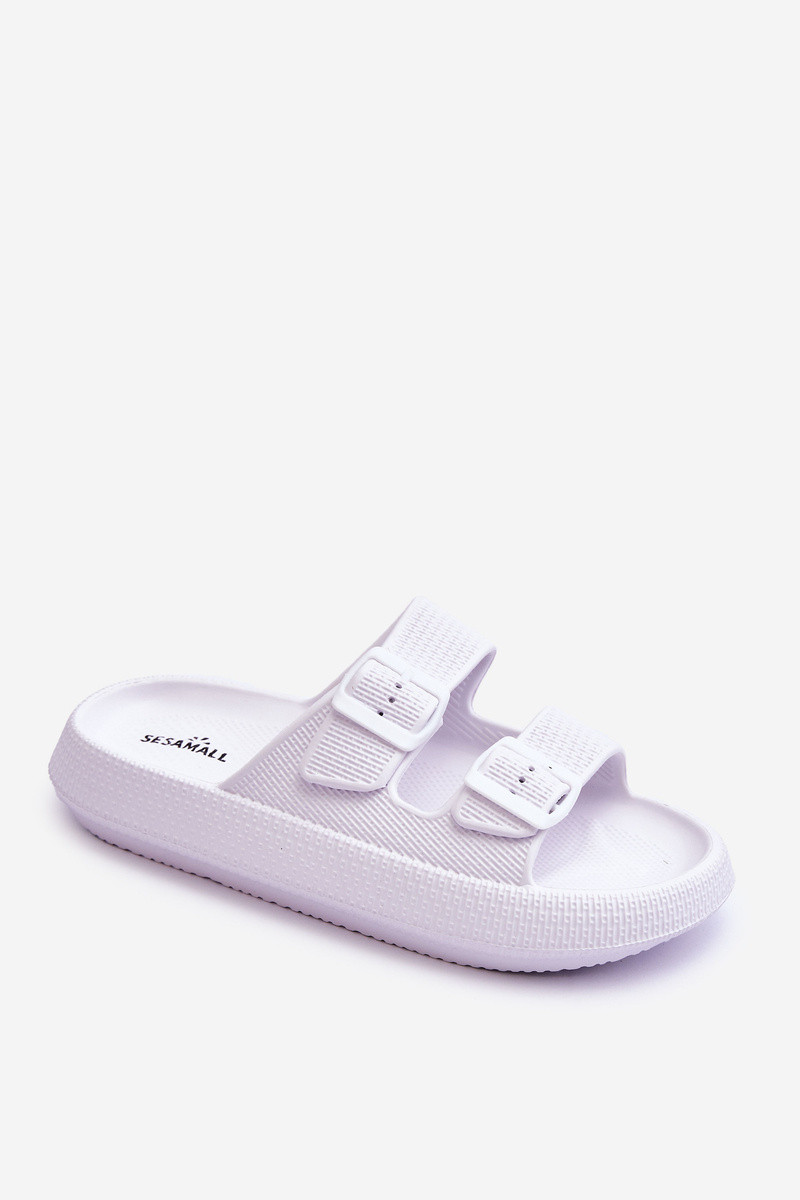 Chinelas femininas com espuma e tiras brancas Sharmen