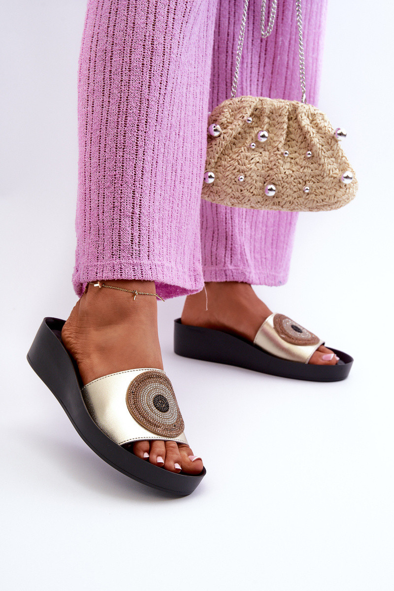 Chinelos de couro Feminino com enfeites S.Barski KV27-019 cor dourada