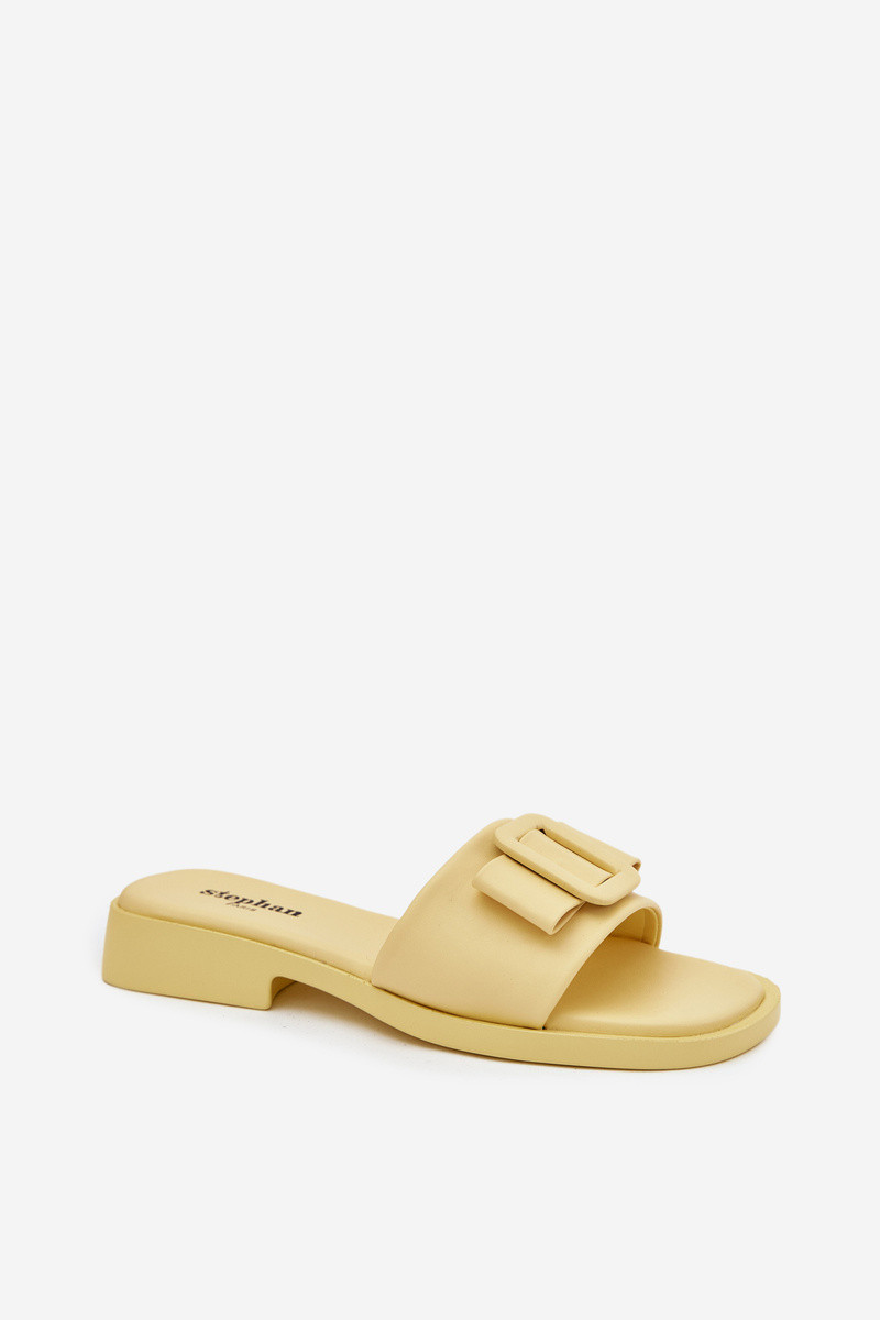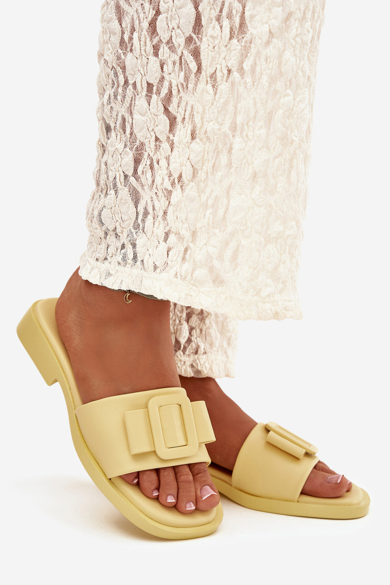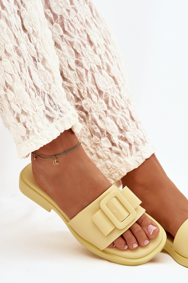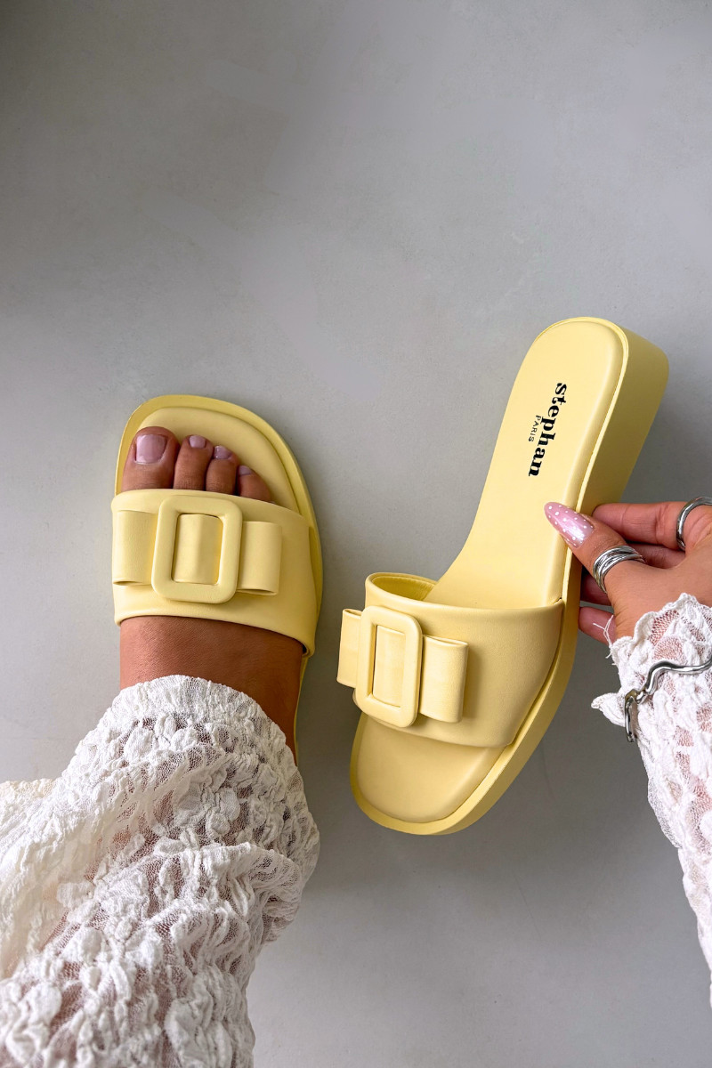 Chinelos femininos com saltos largos e fivelas em amarelo "Melivra"