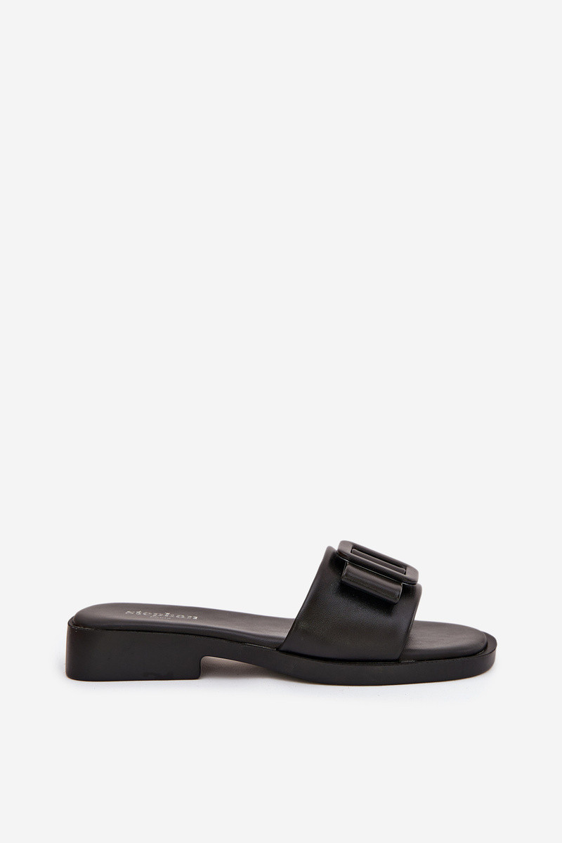 Chinelos femininos com saltos largos e fivelas em preto "Melivra"