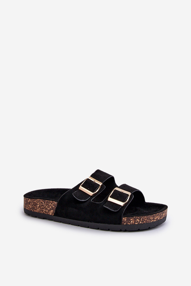 Chinelos femininos Com sola de cortiça cor preta Cortina