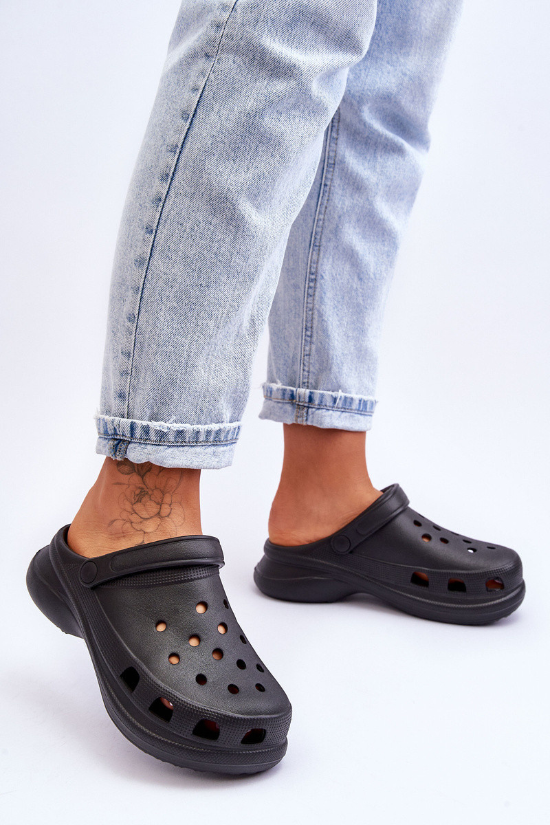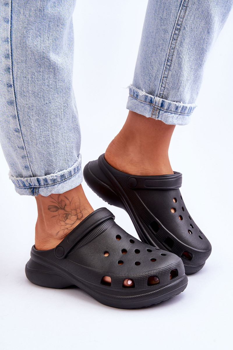 Chinelos de espuma Crocodilos com solas maciças da moda cor preta Katniss
