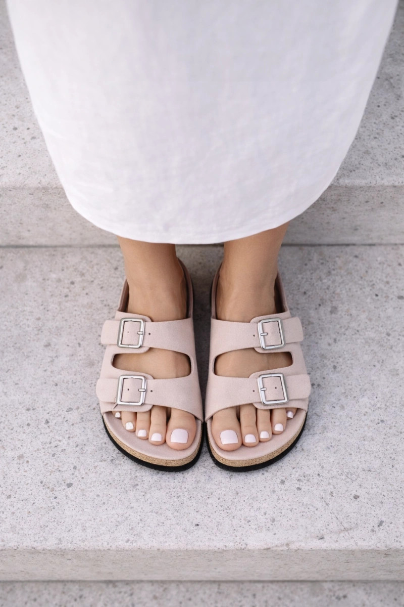 Chinelos femininos com fivelas Tom rosa claro Oliena