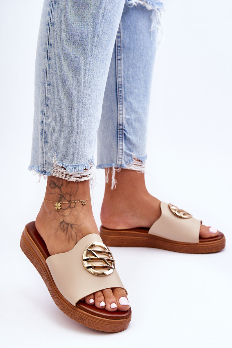 Chinelos bege femininos com ornamentos "Secrets"