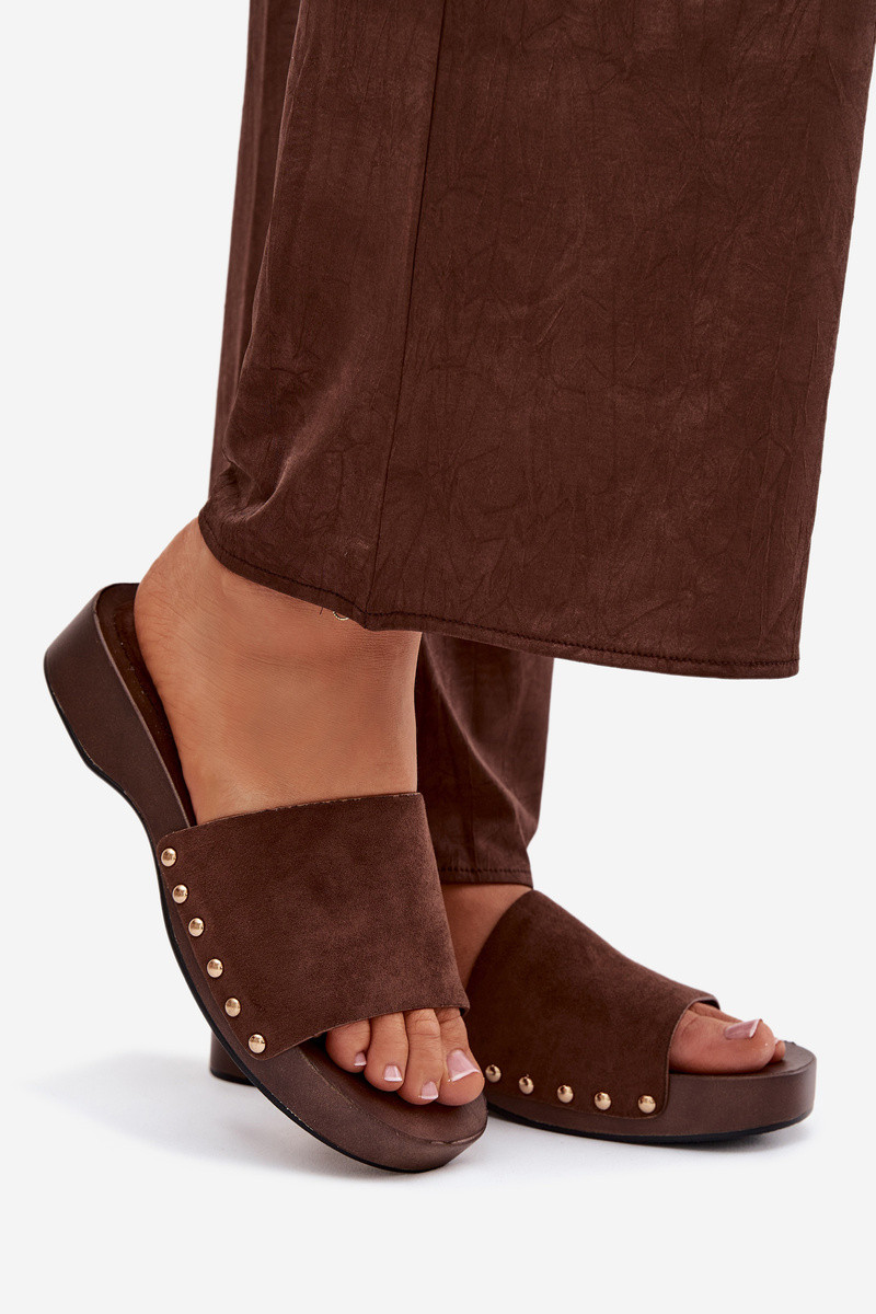 Chinelos femininos com tachas douradas cor chocolate Ferinna