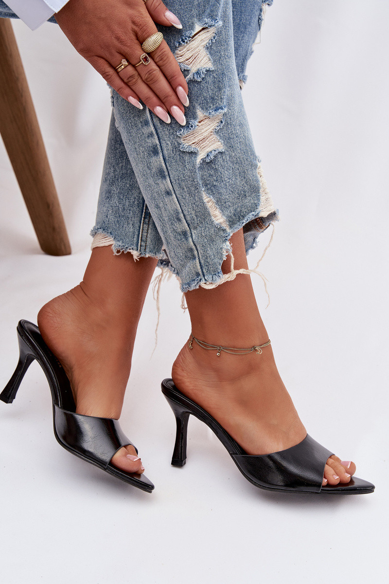com efeito verniz Chinelos femininos com salto cor preta Lirissa
