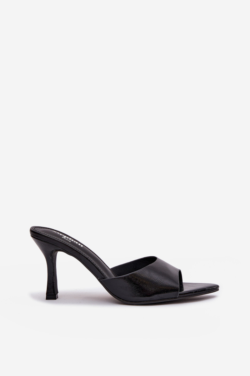 Chinelas femininas pretas envernizadas com salto Lirissa