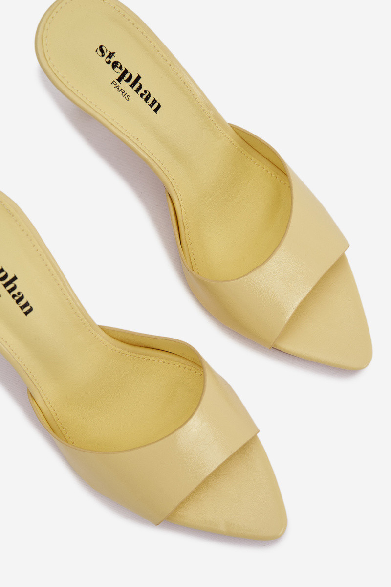 Chinelas femininas amarelas envernizadas com salto Lirissa