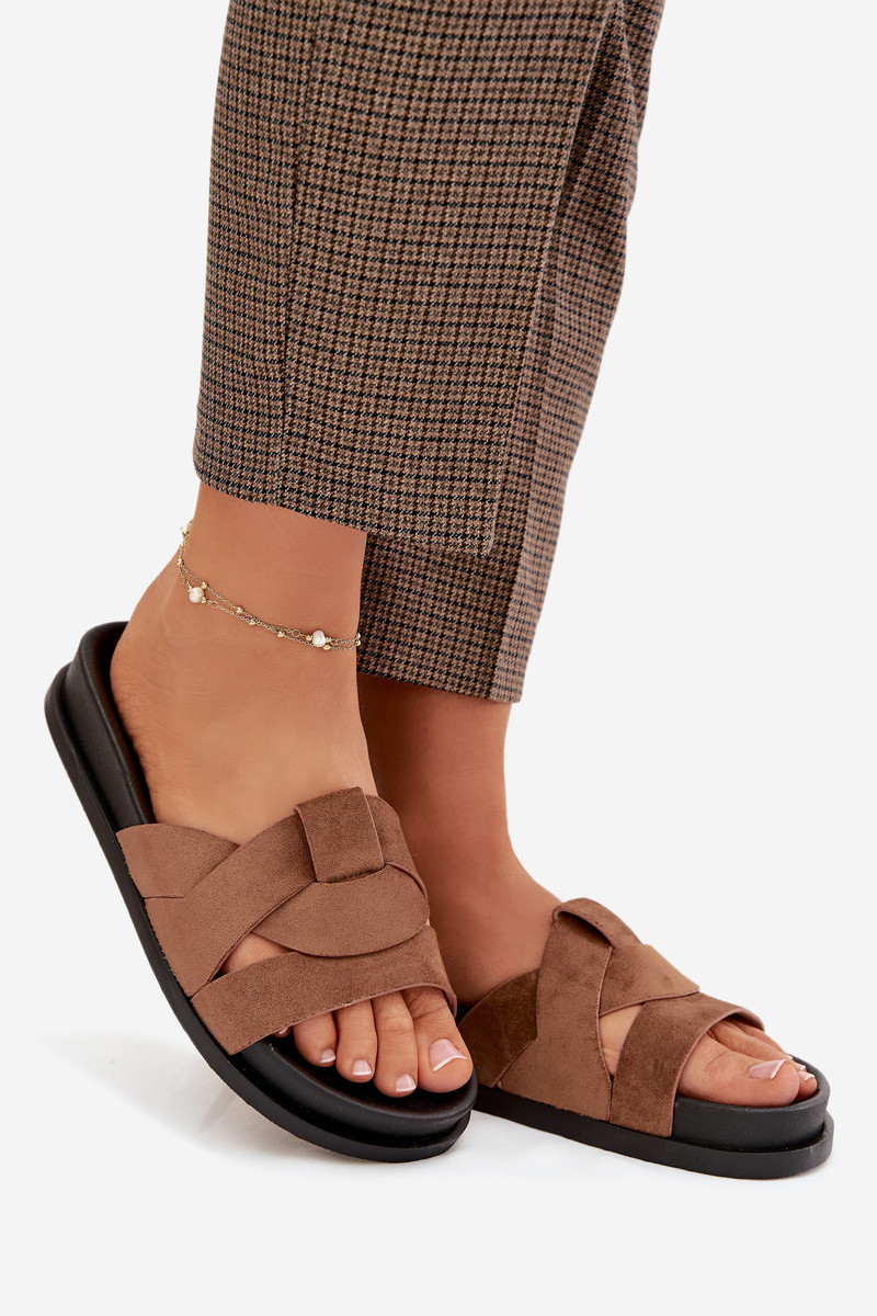 Chinelas femininas cor marrom de camurça sintética com tiras Tai turirivessa