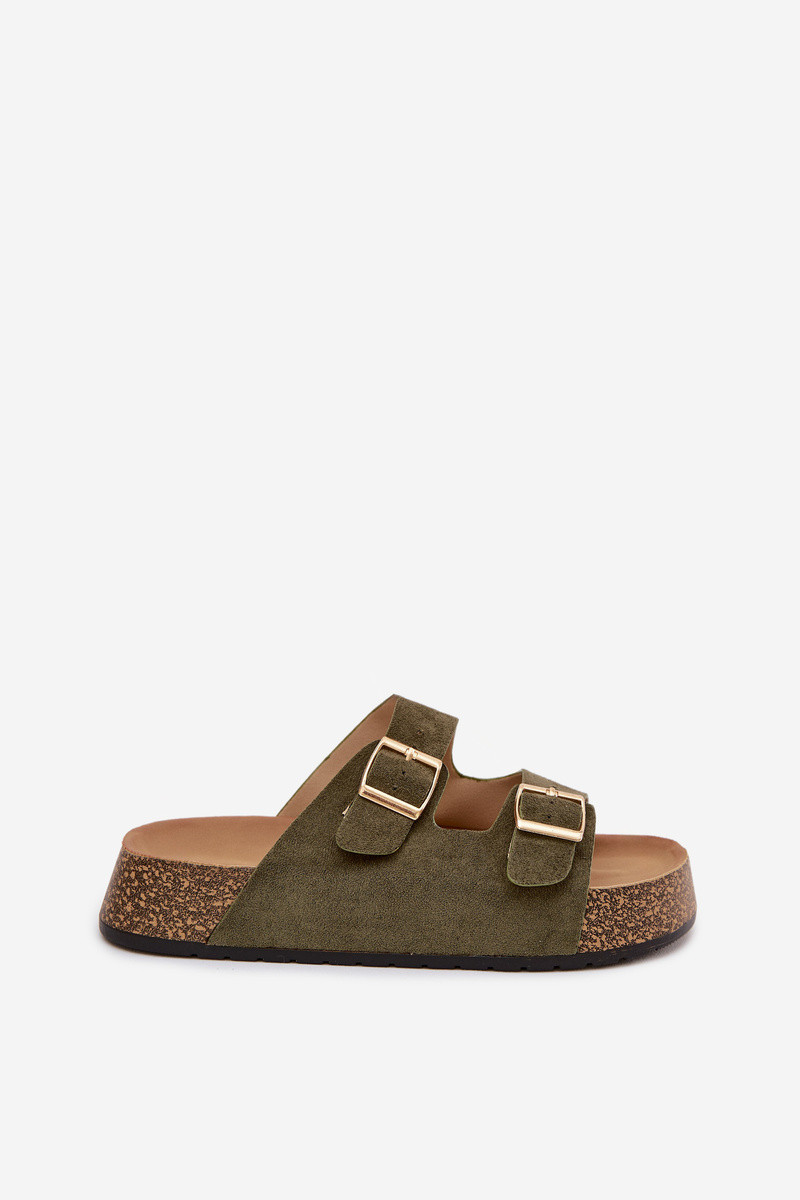 Tovessa chinelos femininos em plataforma com fivelas douradas em tom verde