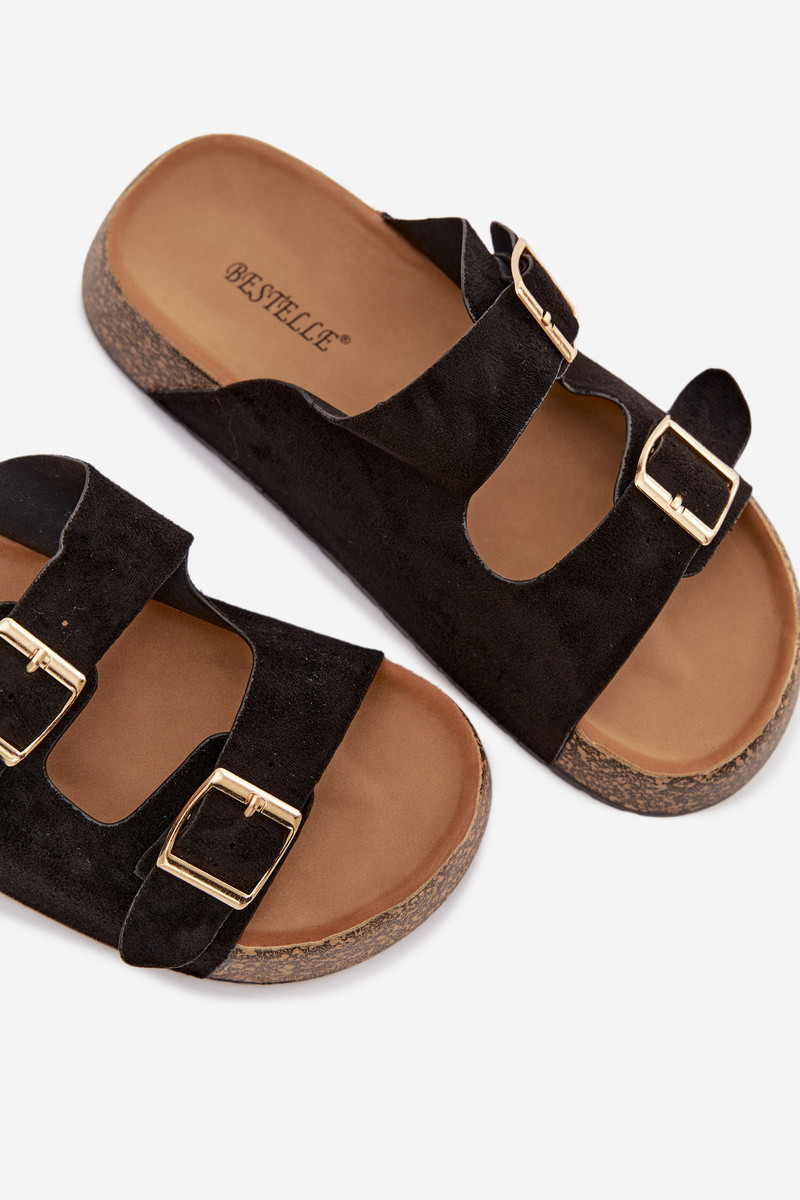 Tovessa chinelos femininos em plataforma com fivelas douradas em tom preto