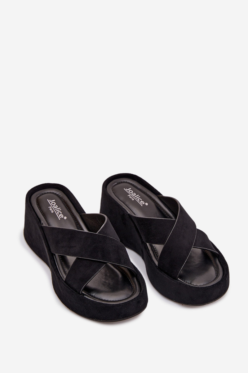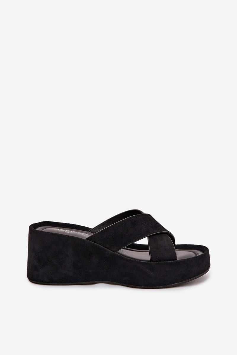 Calorine chinelos femininos em plataforma de camurça sintética pretos