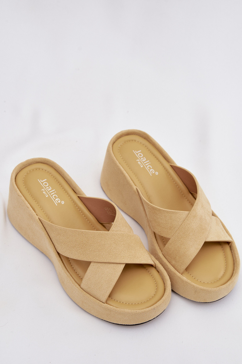 Calorine chinelos femininos em plataforma de camurça sintética amarelos