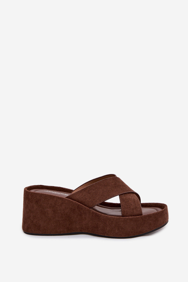 Calorine chinelos femininos em plataforma de camurça sintética marrons