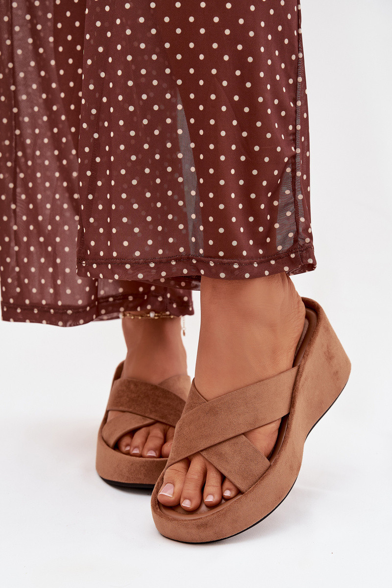 Calorine chinelos femininos em plataforma de camurça sintética marrons