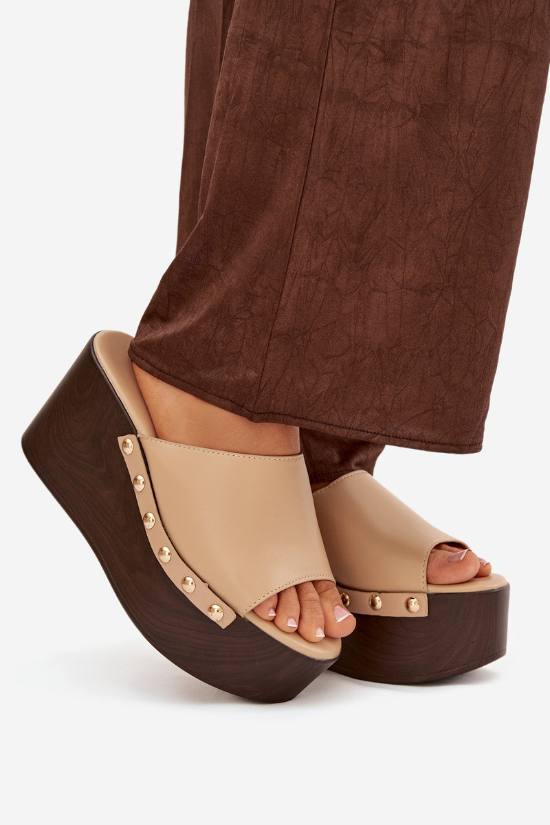 Chinelos femininos de plataforma com tachas na cor areia Tai turireline