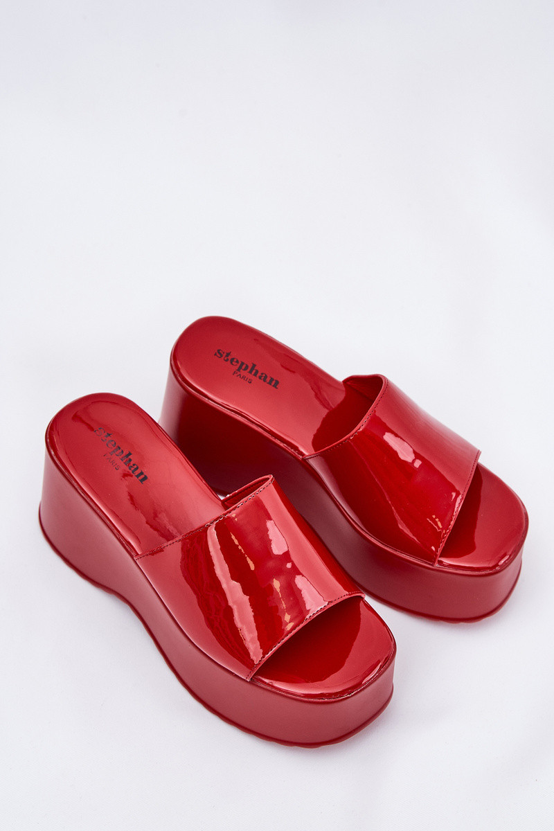 com efeito verniz Chinelos femininos com uma plataforma I Koturnie cor vermelha Nellevia