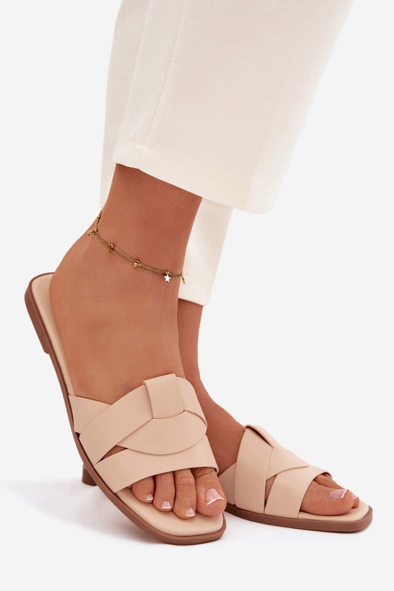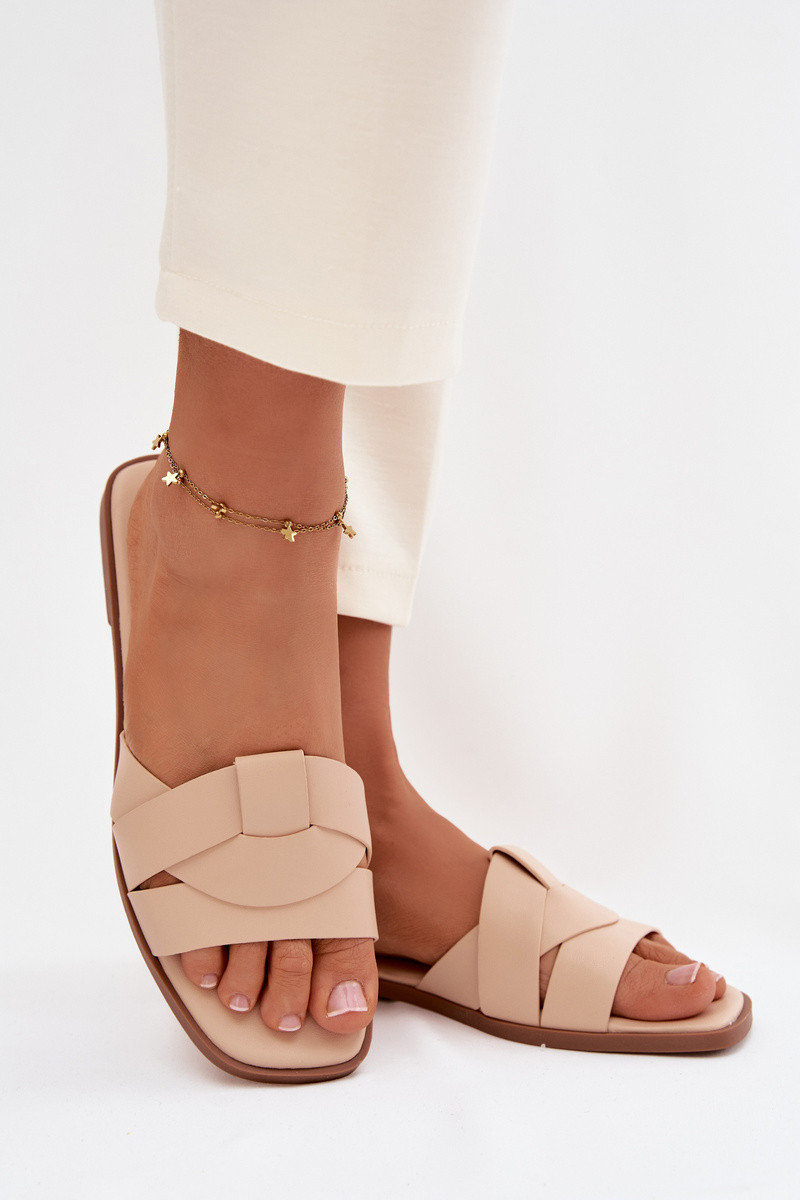 Chinelos femininos bejes baixos com tiras Tai turirissae
