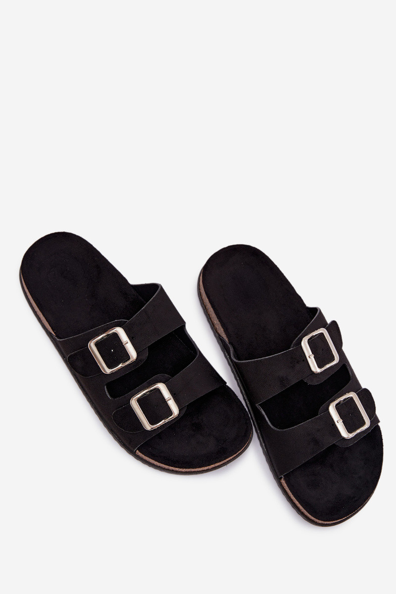 Chinelos femininos com fivelas cor preta Oliena