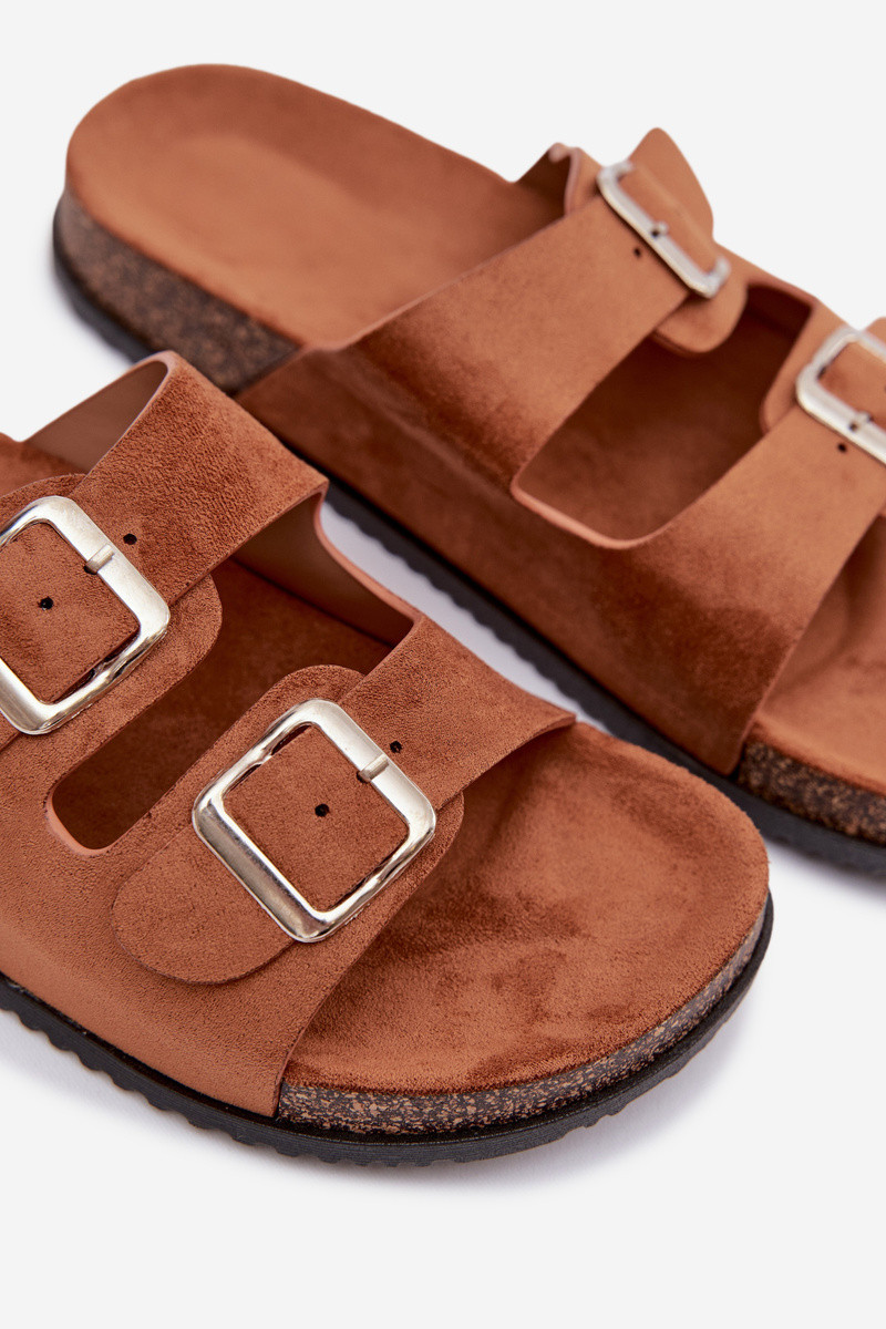 Chinelos femininos marrons com fivelas Oliena